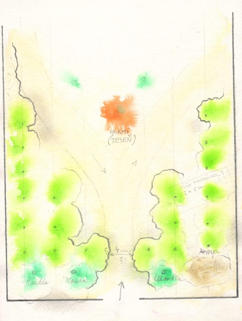 “The orchard creates a network of dynamic life situations that take place in real time. It is a space of temporalities and perpetuities, of permeability and flux, of the planned and the indeterminate. Plant time, however, is different from human time. Trees grow slowly, the long-living walnut tree begins to bear fruit after 10–15 years. Hence the melancholy, the feeling of the impossibility of achieving the desired goal: the orchard will only be fully productive in my old age. Based on these contradictions, the orchard is full of microcosmic potential; it gradually becomes an analytical site that not only represents a different perception of vegetation during our own time, but is a barometer of the landscape’s changing social and cultural environment. This offers a fertile ground for imagining alternative realities.”[10] (Martin Piaček) While the trees might not offer the rapid reward that a vegetable garden does, Rajka Orchard is a place of observation, of hospitality, where visitors or students can learn about changes in the climate or how to reconnect to the time of the land. “These times need projects like this” says Martin, who is building an ongoing research archive based on observing and thinking about/with the Orchard.